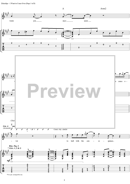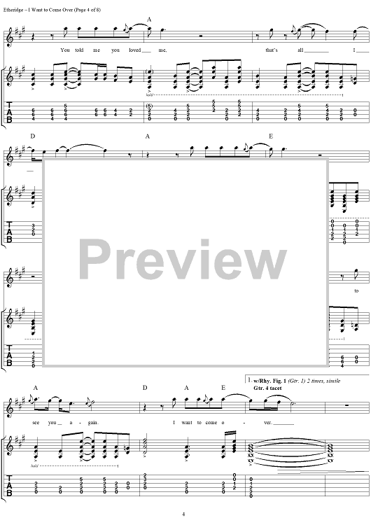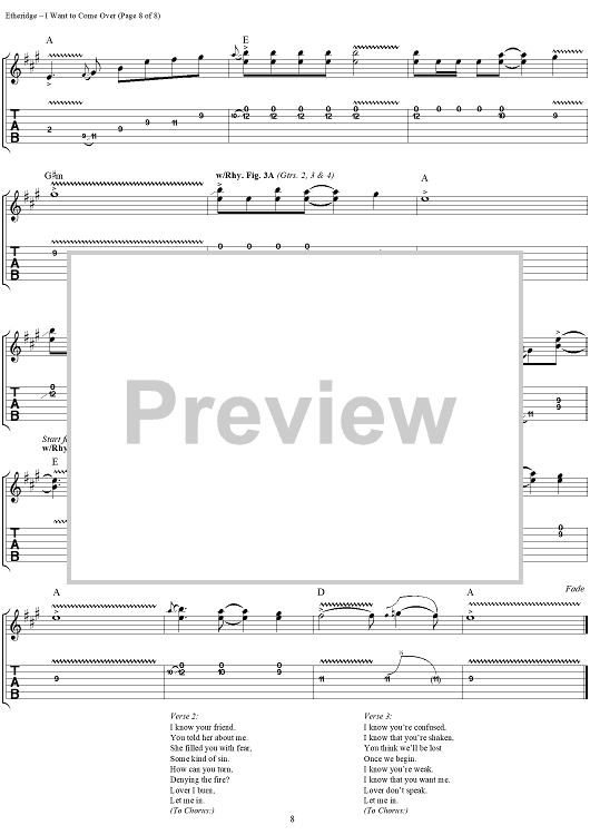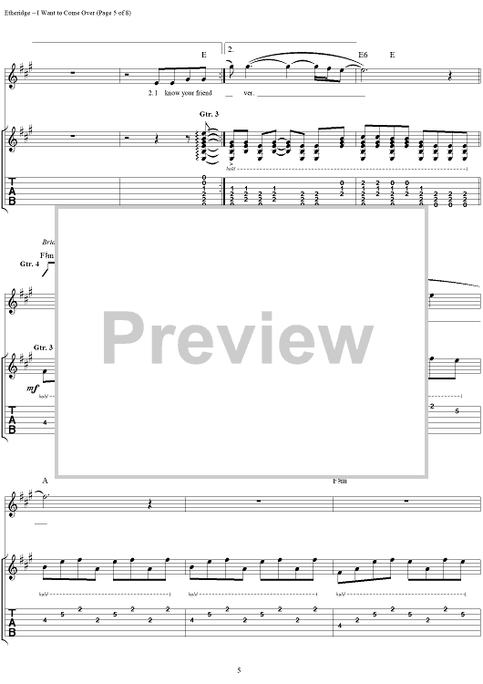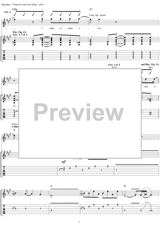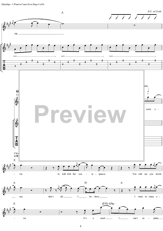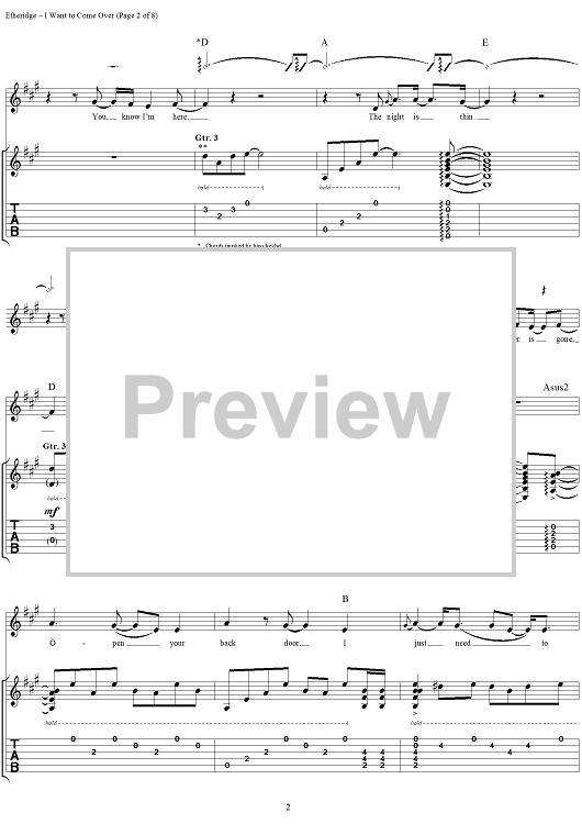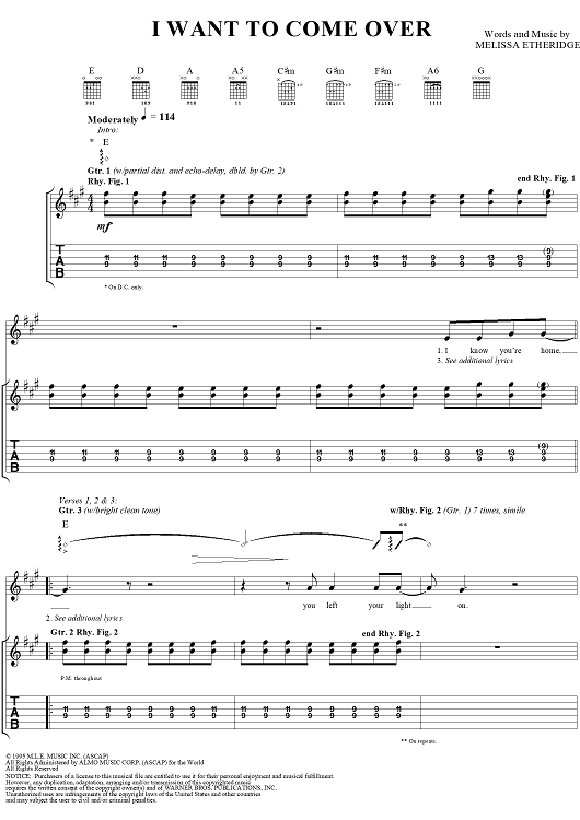 "I Want to Come Over" Sheet Music by Melissa Etheridge