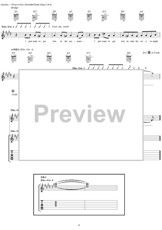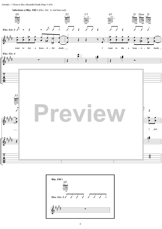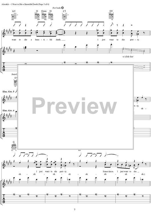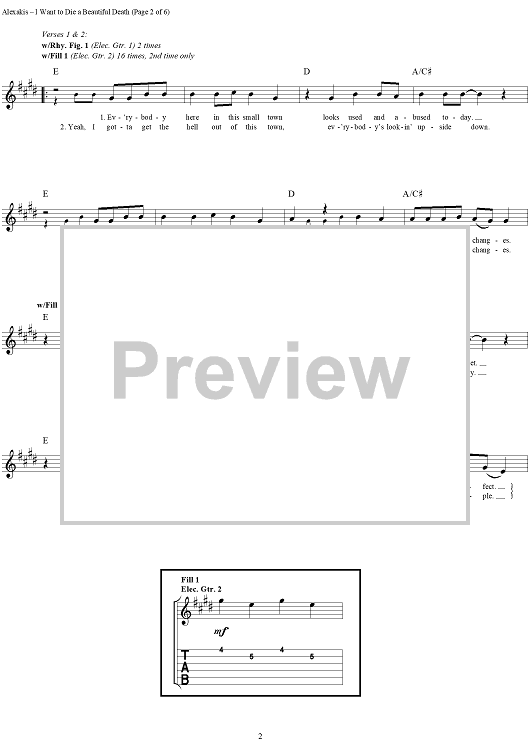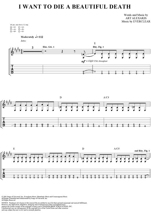 Digital Sheet Music for I Want to Die a Beautiful Death by Everclear, Art Alexakis scored for Guitar Tab/Vocal; id:303008