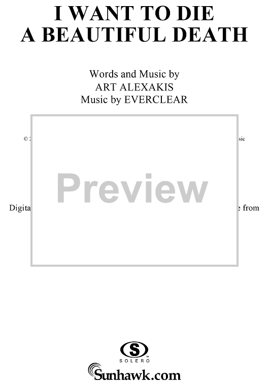 "I Want to Die a Beautiful Death" Sheet Music by Everclear