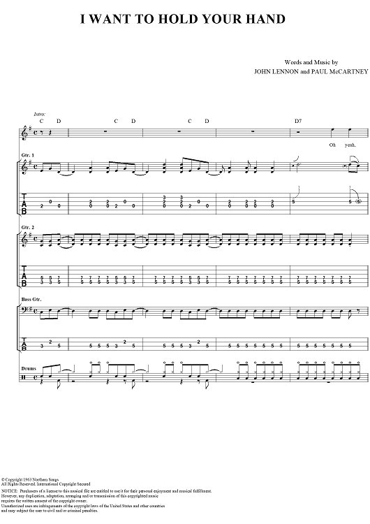 "I Want to Hold Your Hand" Sheet Music by The Beatles