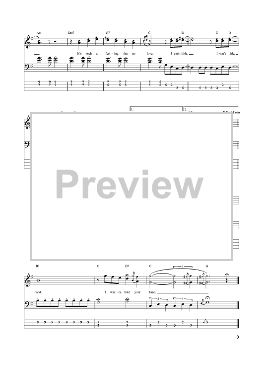 Digital Sheet Music for I Want To Hold Your Hand by Paul McCartney, The Beatles, John Lennon scored for Bass Tab; id:374846