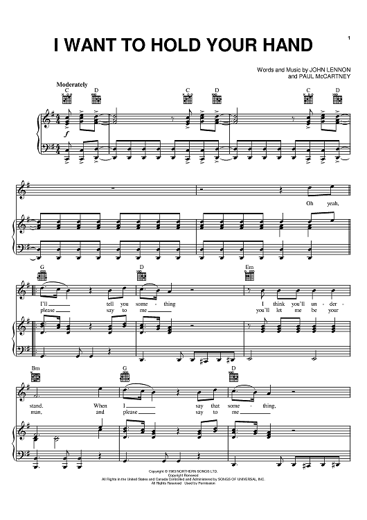 Digital Sheet Music for I Want To Hold Your Hand by Paul McCartney, The Beatles, John Lennon scored for Piano/Vocal/Chords; id:374869