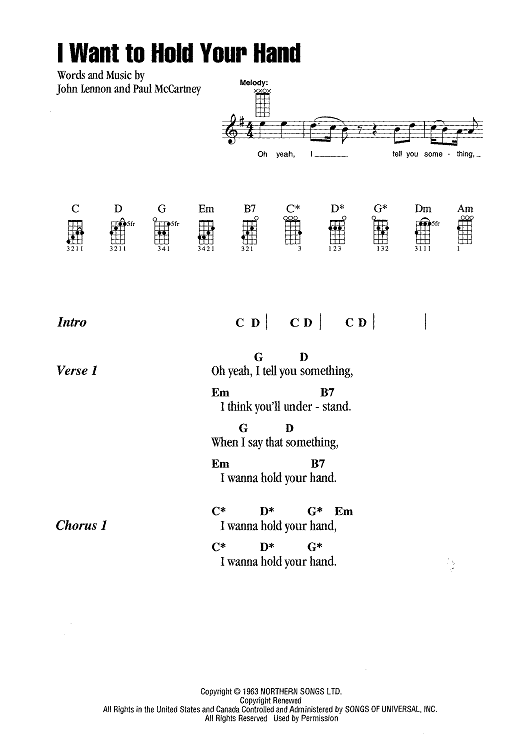 Digital Sheet Music for I Want To Hold Your Hand by Paul McCartney, The Beatles, John Lennon scored for Ukulele/Vocal; id:466524