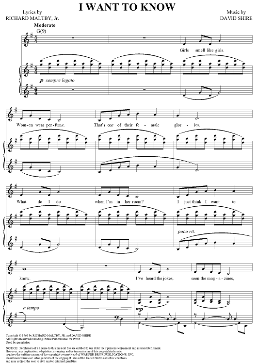 "I Want to Know" Sheet Music by David Shire