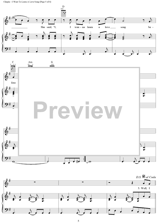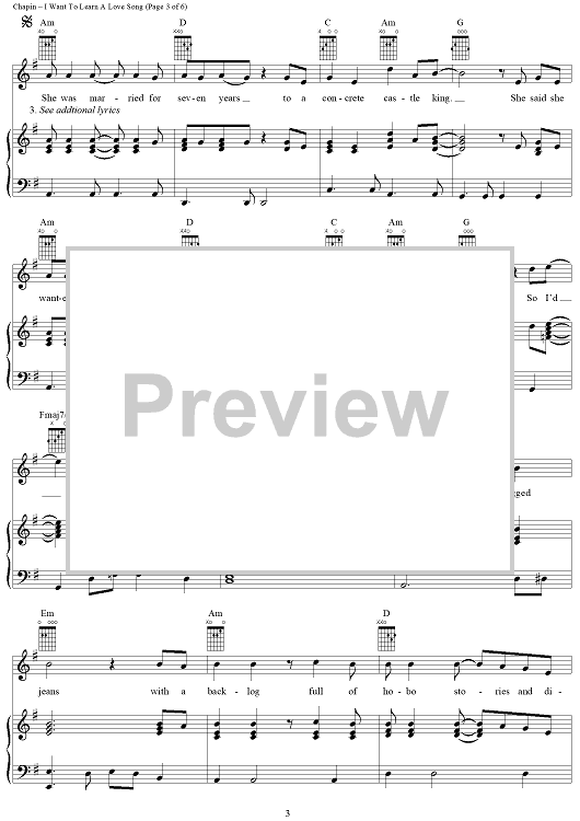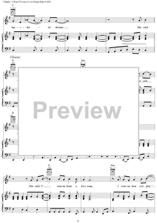 Digital Sheet Music for I Want To Learn A Love Song by Harry Chapin scored for Piano/Vocal/Chords; id:417431