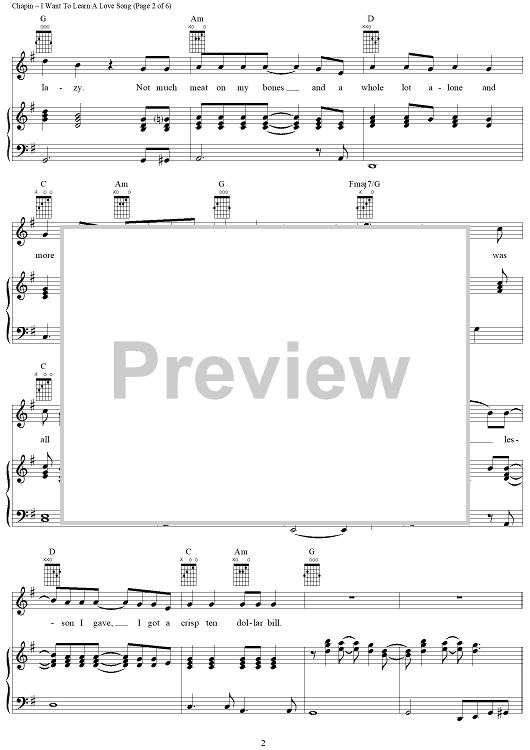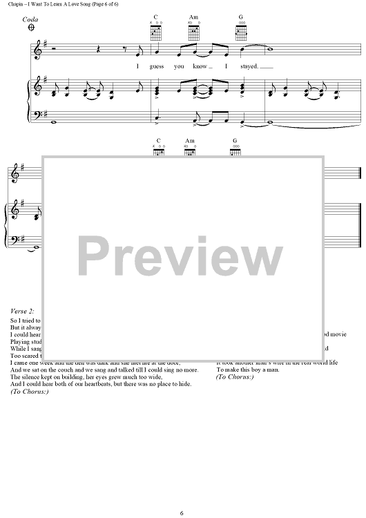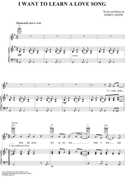 "I Want To Learn A Love Song" Sheet Music by Harry Chapin