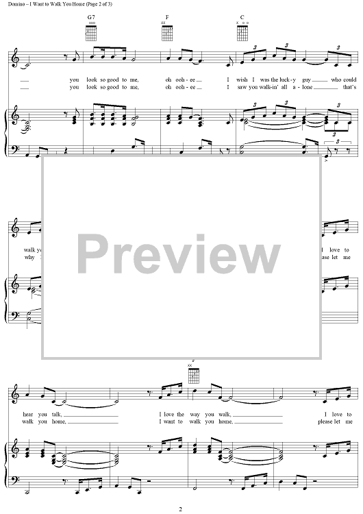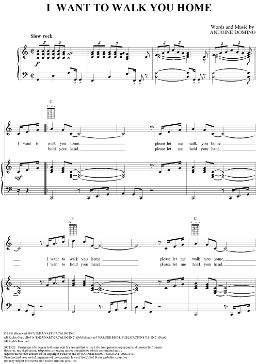 Digital Sheet Music for I Want to Walk You Home by Fats Domino scored for Piano/Vocal/Chords; id:124234