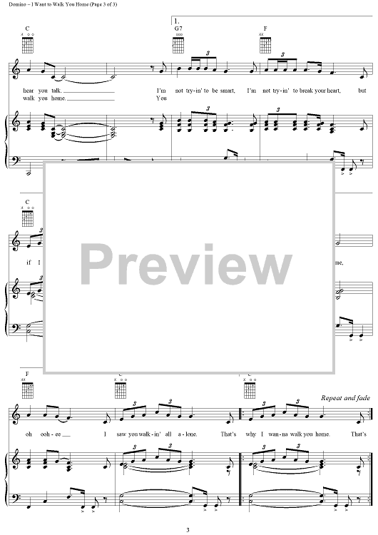 "I Want to Walk You Home" Sheet Music by Fats Domino