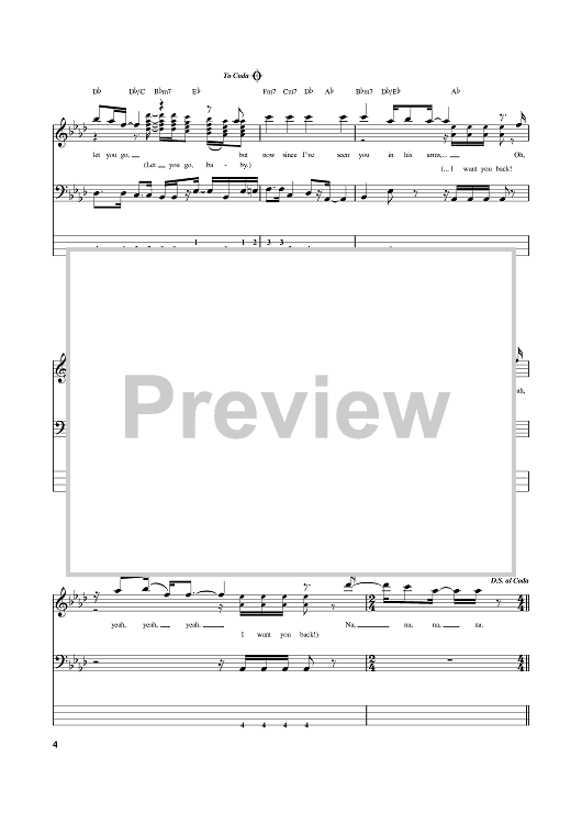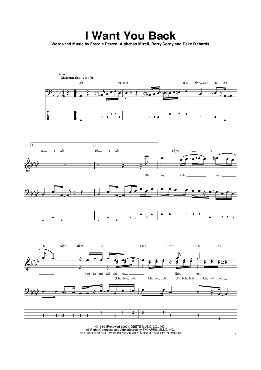 Digital Sheet Music for I Want You Back by Berry Gordy Jr., Freddie Perren, Deke Richards, The Jackson 5, Alphonso Mizell scored for Bass Tab; id:381466