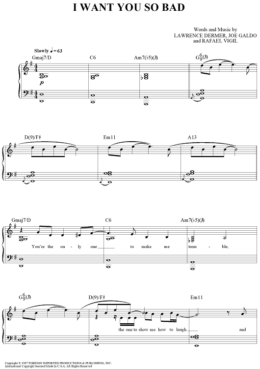 Digital Sheet Music for I Want You So Bad by Lawrence Dermer, Miami Sound Machine, Rafael Vigil, Joe Galdo scored for Piano/Vocal/Chords; id:456317