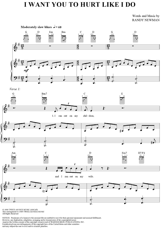 "I Want You to Hurt Like I Do" Sheet Music by Randy Newman