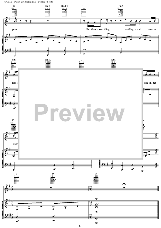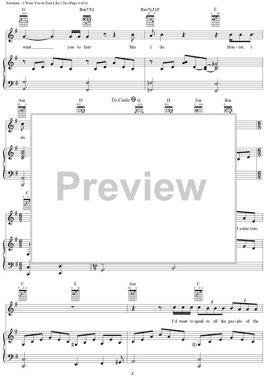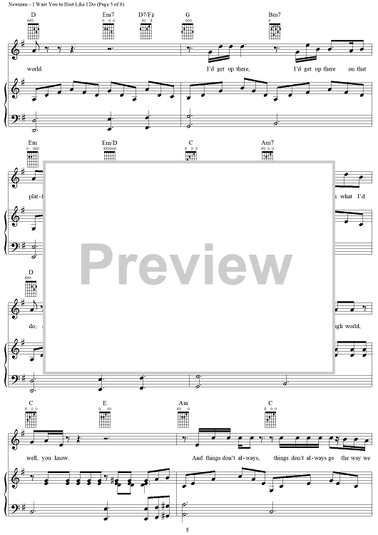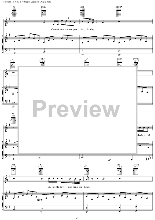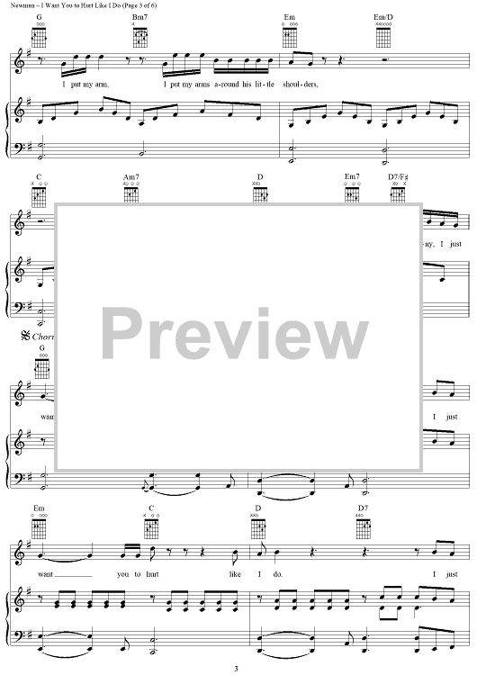Digital Sheet Music for I Want You to Hurt Like I Do by Randy Newman scored for Piano/Vocal/Chords; id:234592