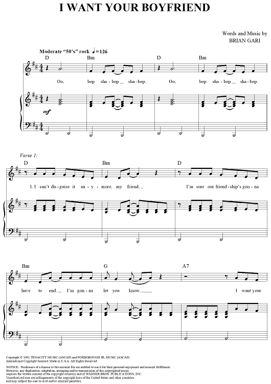 "I Want Your Boyfriend" Sheet Music by Brian Gari