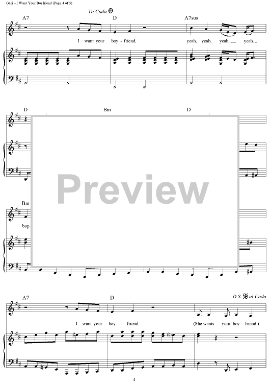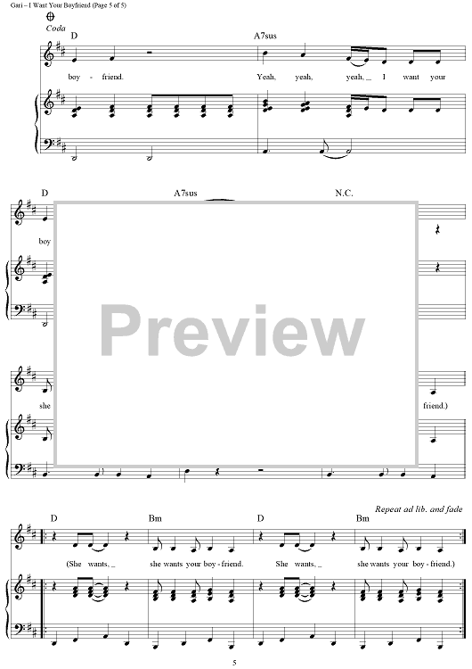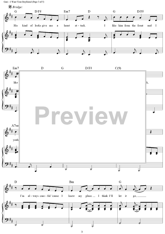 Digital Sheet Music for I Want Your Boyfriend by Brian Gari scored for Piano/Vocal/Chords; id:355050