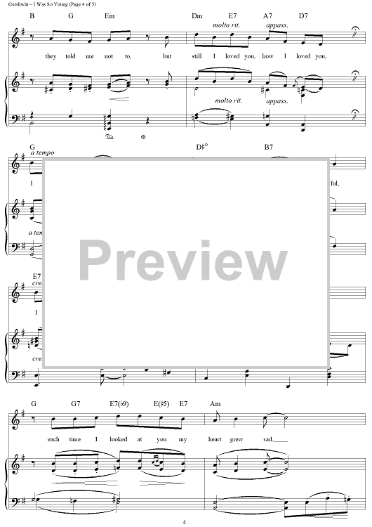 "I Was So Young (You Were So Beautiful)" Sheet Music by George Gershwin