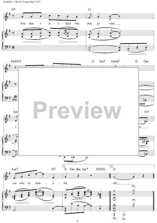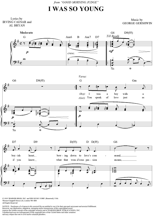 Digital Sheet Music for I Was So Young (You Were So Beautiful) by George Gershwin, Irving Caesar, Alfred Bryan scored for Piano/Vocal/Chords; id:268599