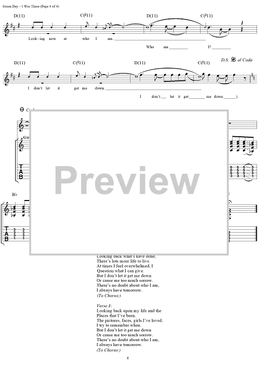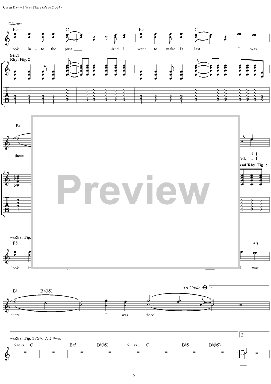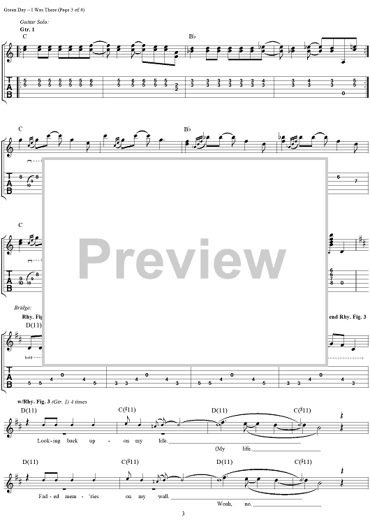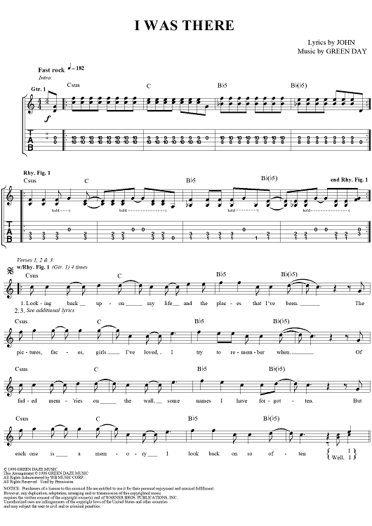 Digital Sheet Music for I Was There by John, Green Day scored for Guitar Tab/Vocal; id:113024