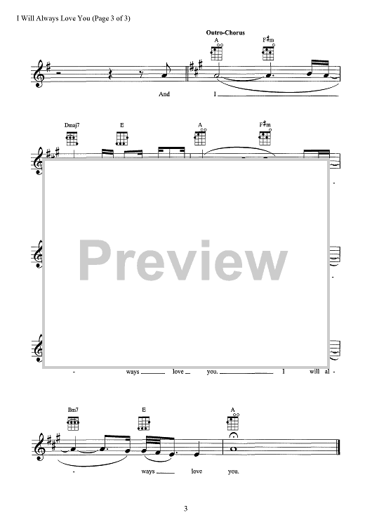 Digital Sheet Music for I Will Always Love You by Dolly Parton scored for Ukulele/Vocal; id:466857