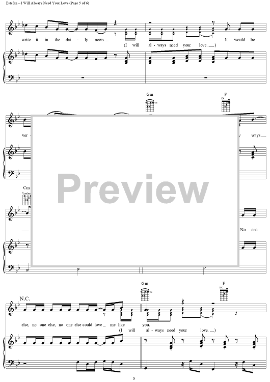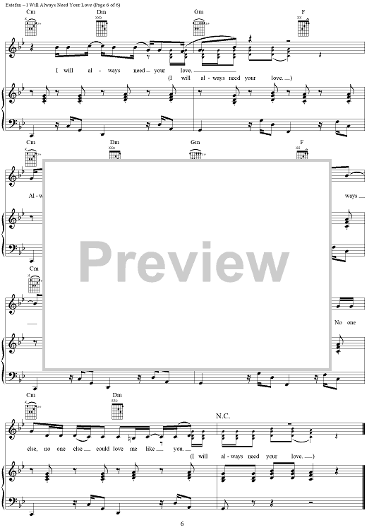 "I Will Always Need Your Love" Sheet Music by Gloria Estefan