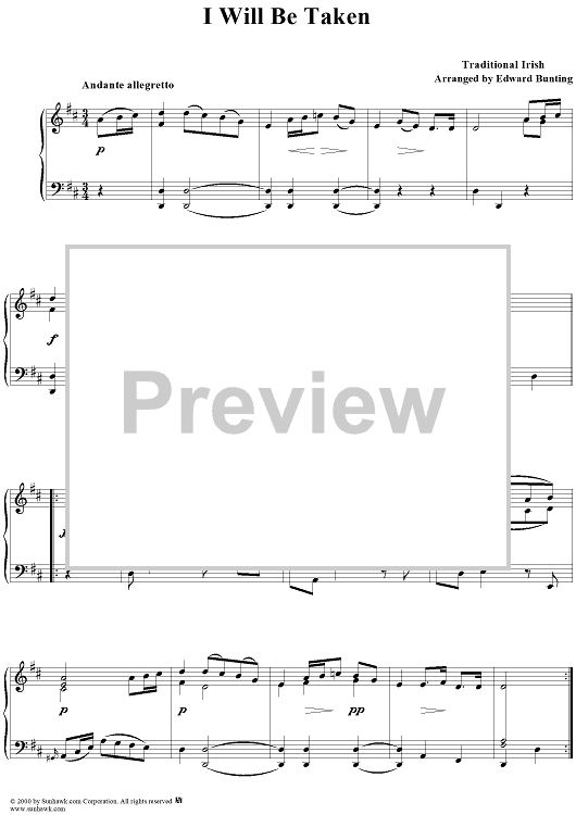 Digital Sheet Music for I Will be Taken by , Edward Bunting, Traditional scored for Piano Solo; id:261016