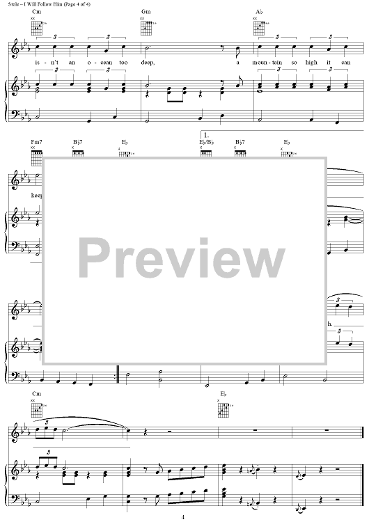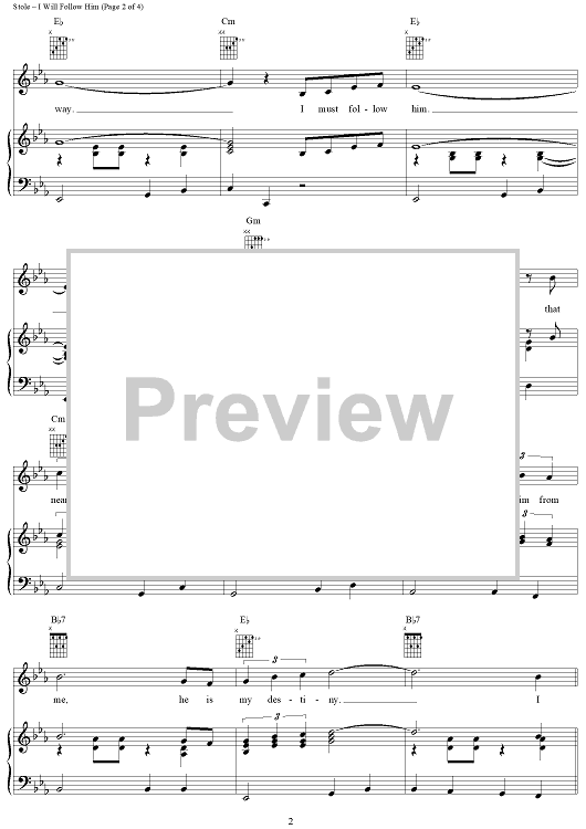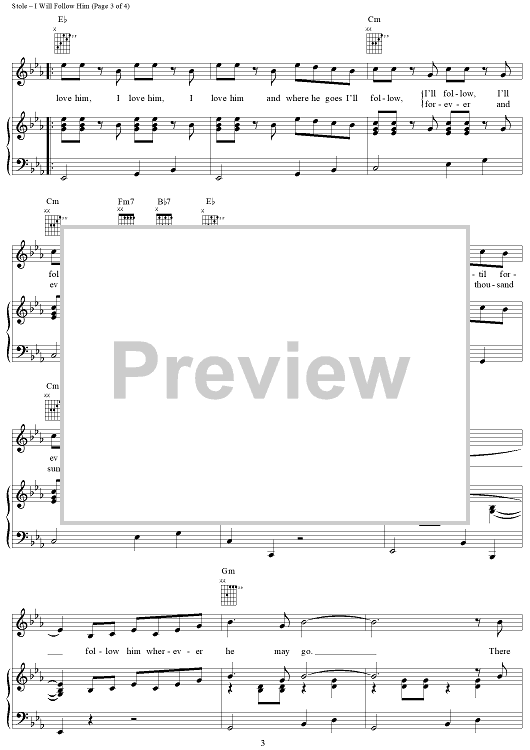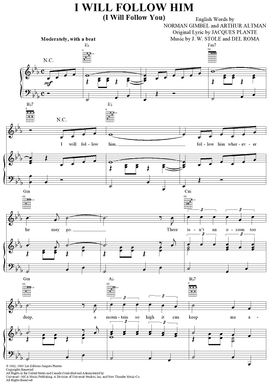 Digital Sheet Music for I Will Follow Him by J. W. Stole, Del Roma, Jacques Plante, Little Peggy March scored for Piano/Vocal/Chords; id:289782