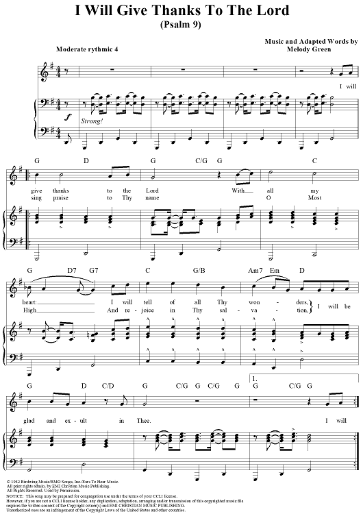 "I Will Give Thanks To The Lord" Sheet Music by Keith Gordon Green