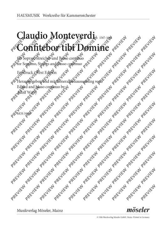 Digital Sheet Music for I Will Give Thanks To The Lord - Score by Claudio Monteverdi scored for Soprano, Strings And Basso Continuo; id:501949