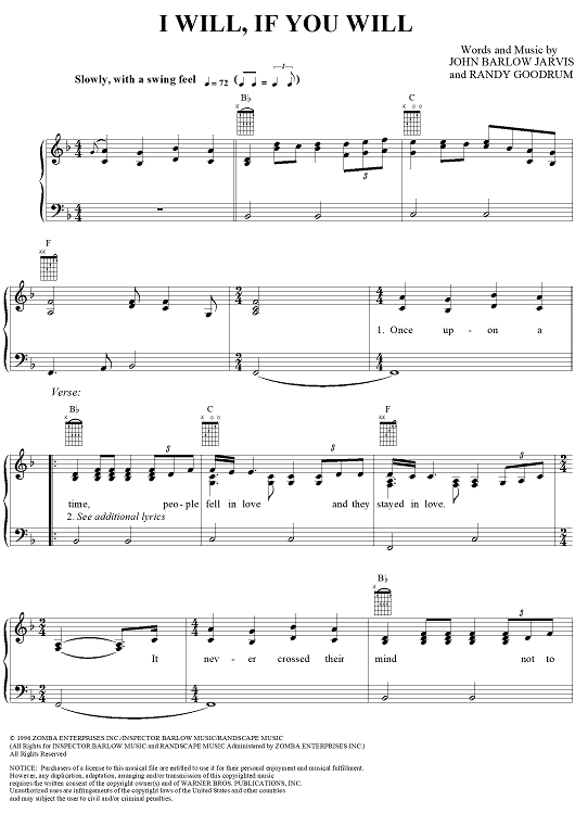 Digital Sheet Music for I Will, If You Will by John Berry, Randy Goodrum, John Jarvis scored for Piano/Vocal/Chords; id:112498