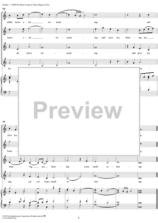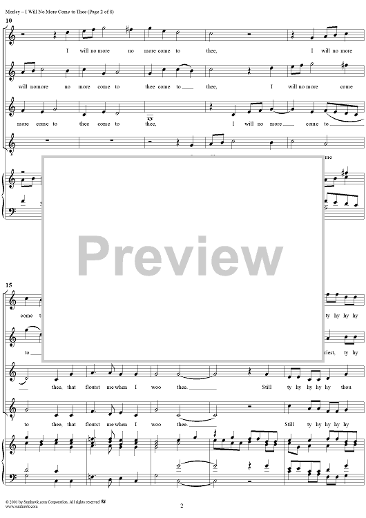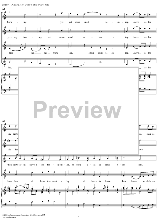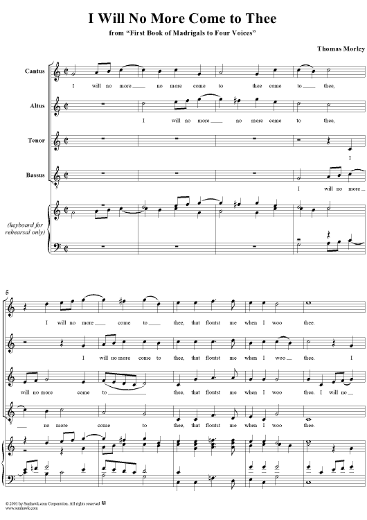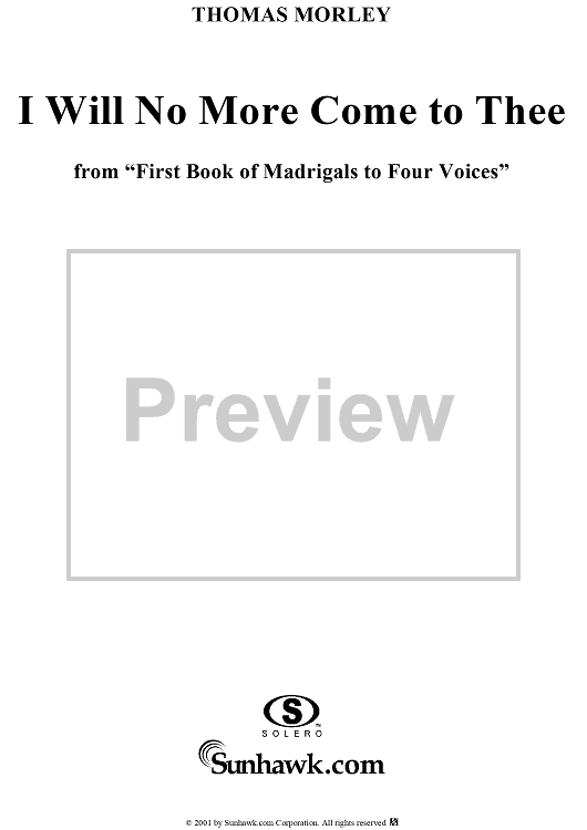 Digital Sheet Music for I Will No More Come to Thee by Thomas Morley scored for Four-part Mixed Chorus; id:260167