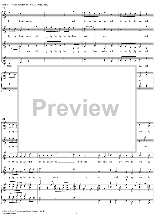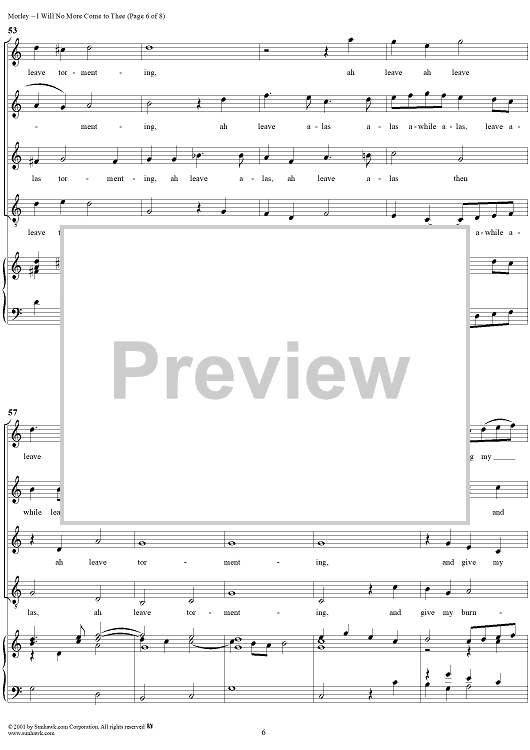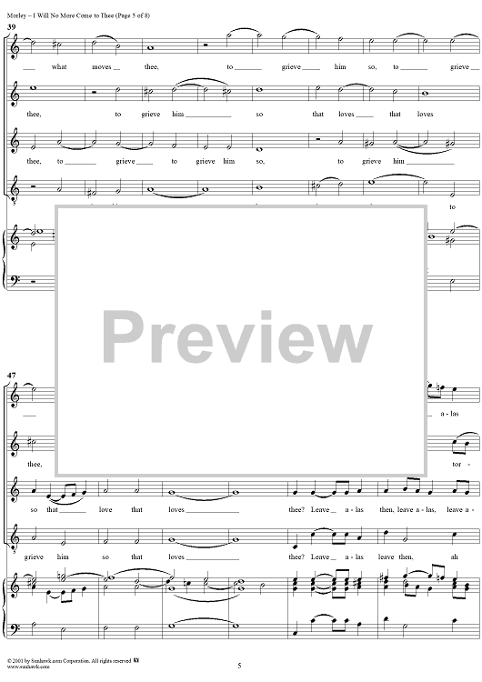 "I Will No More Come to Thee" Sheet Music by Thomas Morley