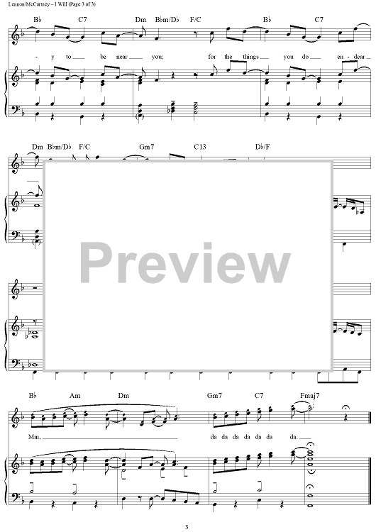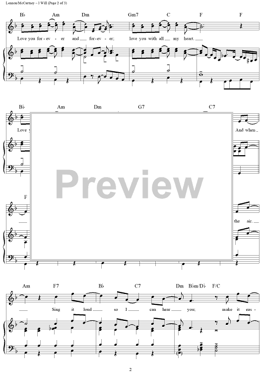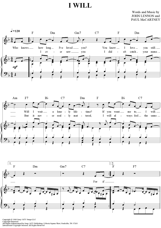 Digital Sheet Music for I Will by Paul McCartney, The Beatles, John Lennon scored for Piano/Vocal/Chords; id:404276