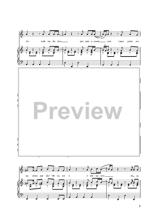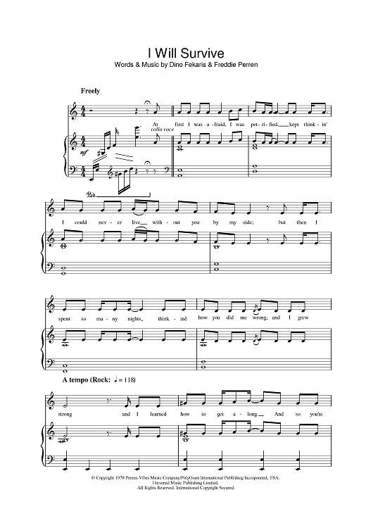 Digital Sheet Music for I Will Survive by Dino Fekaris, Gloria Gaynor, Freddie Perren scored for Piano/Vocal/Chords; id:385129