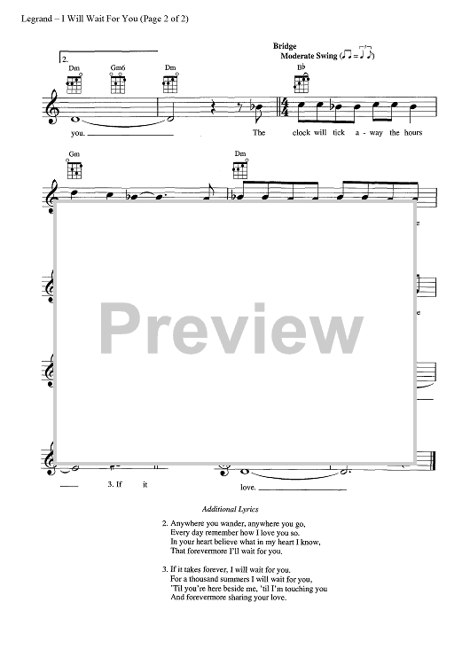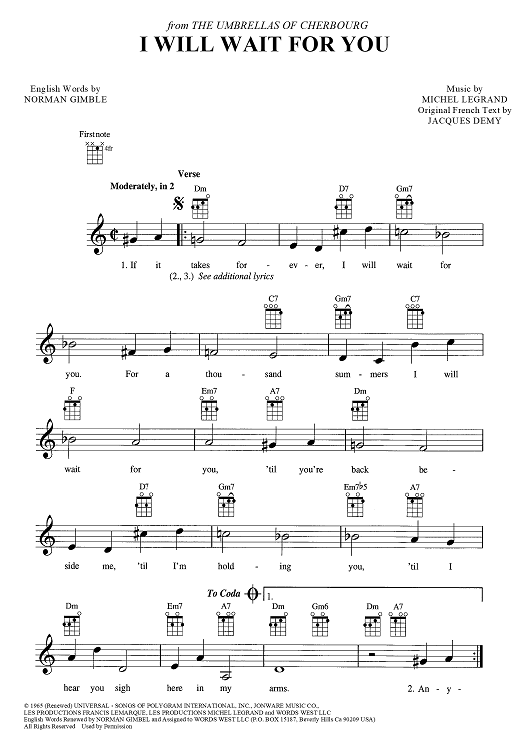 Digital Sheet Music for I Will Wait For You by Frank Sinatra, Michel LeGrand, Norman Gimbel, Jacques Demy scored for Ukulele/Vocal; id:449190