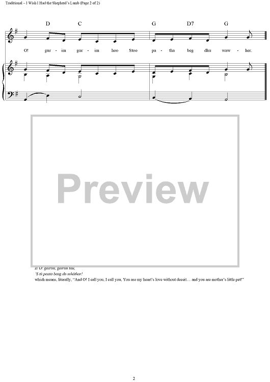 "I Wish I Had the Shepherd's Lamb" Sheet Music by Traditional