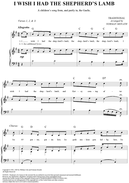 Digital Sheet Music for I Wish I Had the Shepherd's Lamb by Norman Monath, Traditional scored for Piano/Vocal/Chords; id:261027