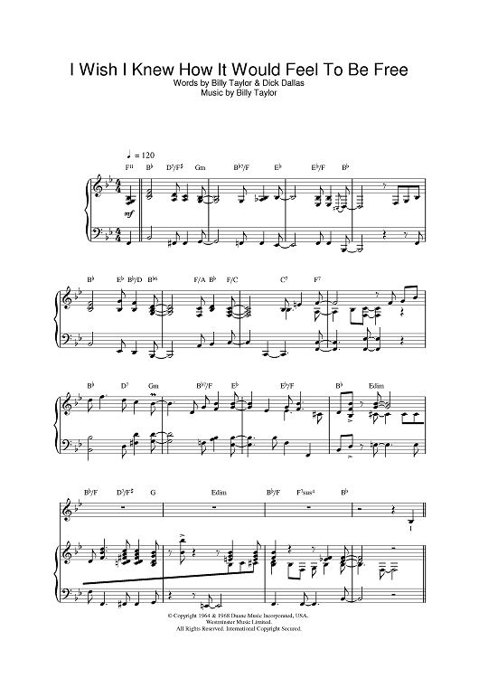 "I Wish I Knew How It Would Feel To Be Free" Sheet Music by Nina Simone