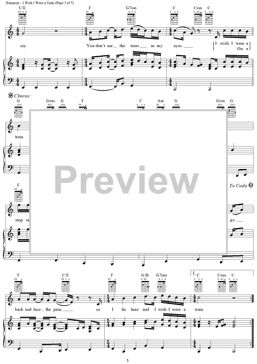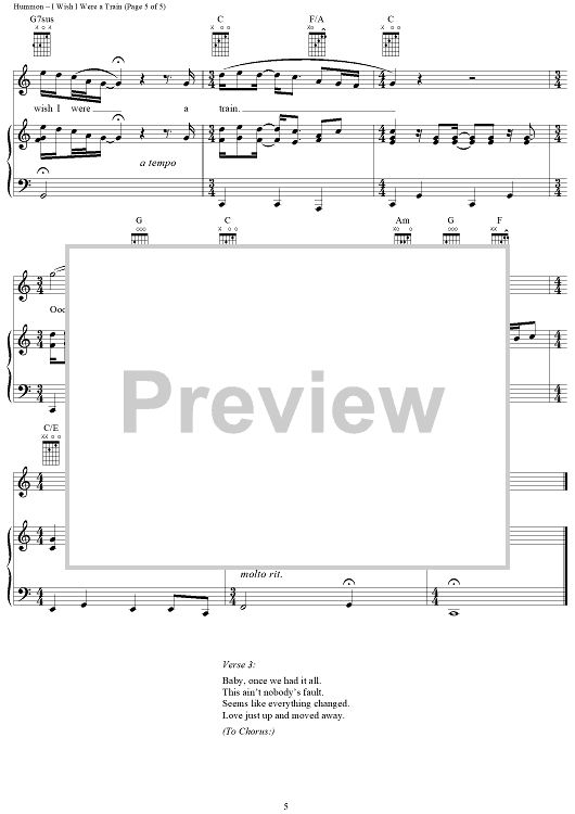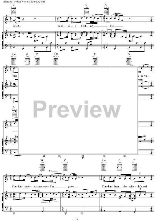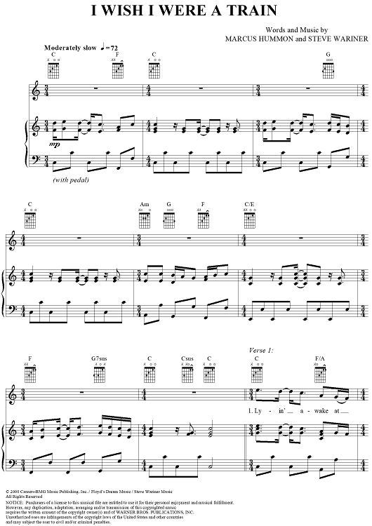 Digital Sheet Music for I Wish I Were a Train by Steve Wariner, Marcus Hummon scored for Piano/Vocal/Chords; id:286473