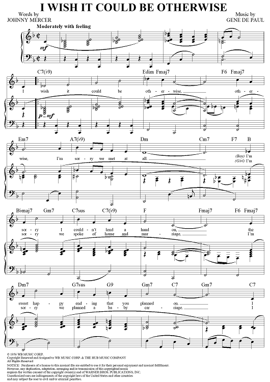 Digital Sheet Music for (I Wish it Could Be) Otherwise by Johnny Mercer, Gene De Paul scored for Piano/Vocal/Chords; id:271483