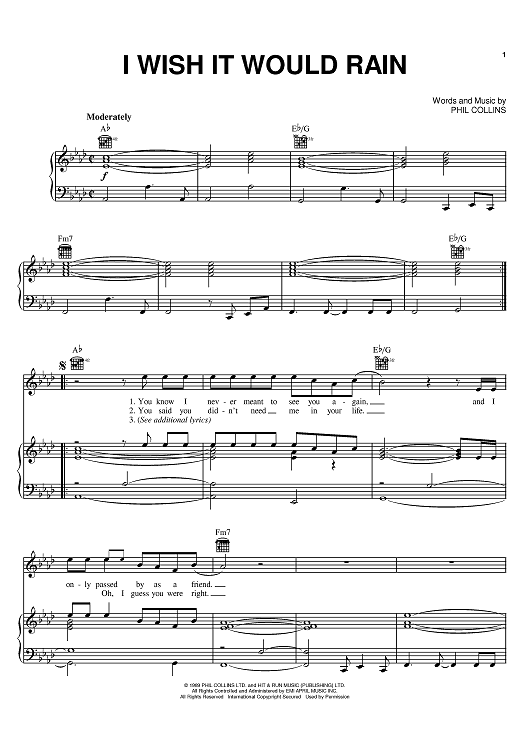 "I Wish It Would Rain" Sheet Music by Phil Collins