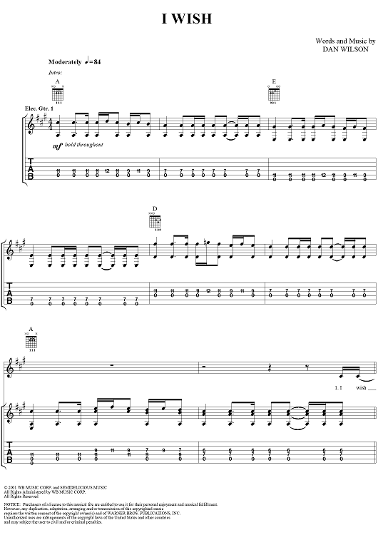 Digital Sheet Music for I Wish by Semisonic, Dan Wilson scored for Guitar Tab/Vocal; id:285288