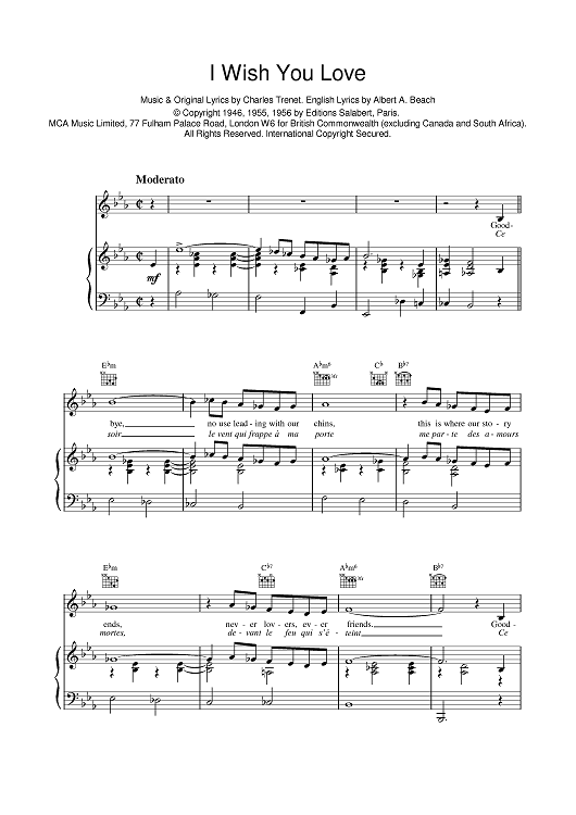 Digital Sheet Music for I Wish You Love by Charles Trenet, Dean Martin, Albert Beach, Gloria Lynne, Shirley Bassey scored for Piano/Vocal/Chords; id:378747