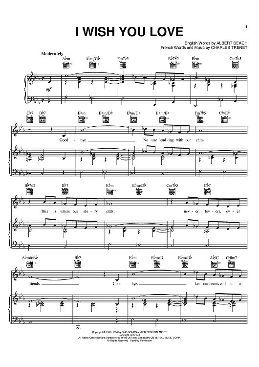 Digital Sheet Music for I Wish You Love by Charles Trenet, Dean Martin, Albert Beach, Gloria Lynne, Shirley Bassey scored for Piano/Vocal/Chords; id:383214