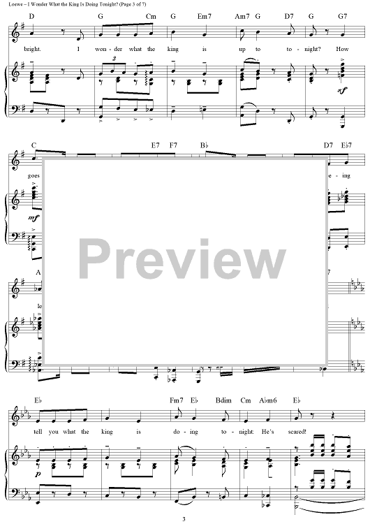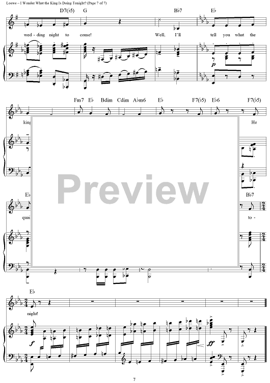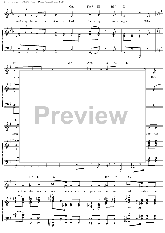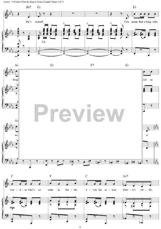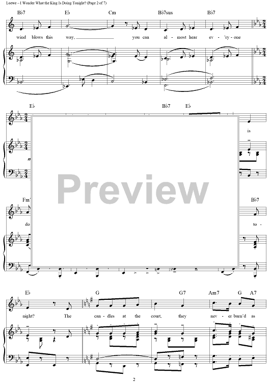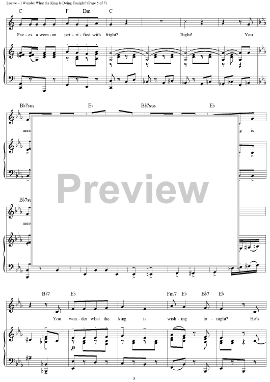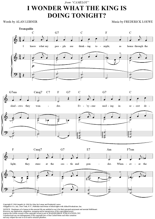 Digital Sheet Music for I Wonder What The King Is Doing Tonight? by Frederick Loewe, Alan Jay Lerner scored for Piano/Vocal/Chords; id:314341