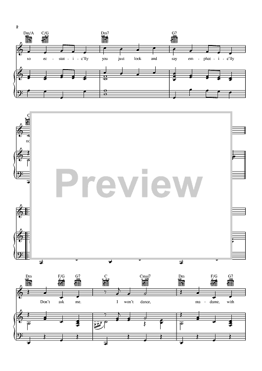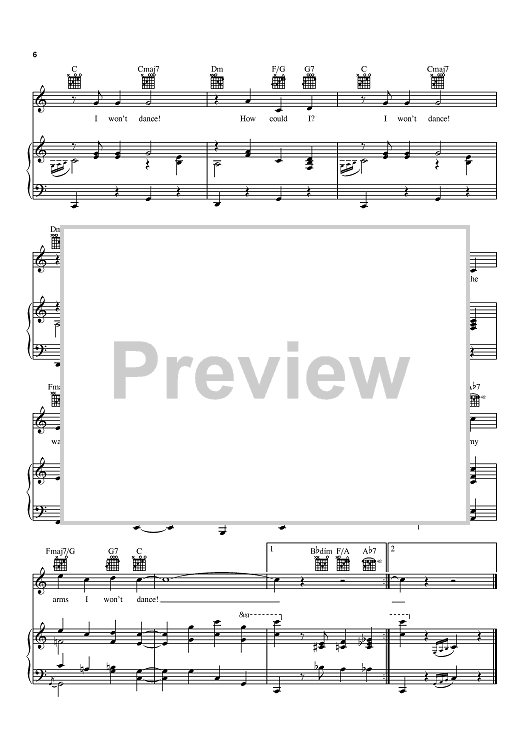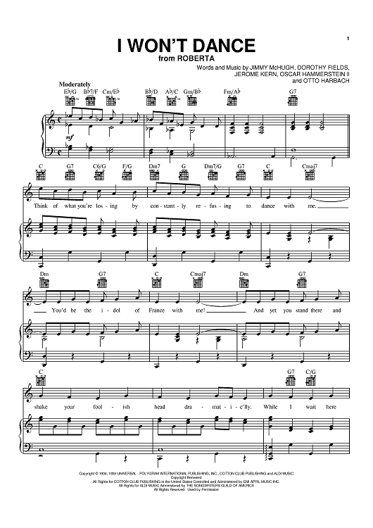 Digital Sheet Music for I Won't Dance by Frank Sinatra, Fred Astaire, Jerome Kern, Ella Fitzgerald, Oscar Hammerstein II, Otto Harbach scored for Piano/Vocal/Chords; id:382058