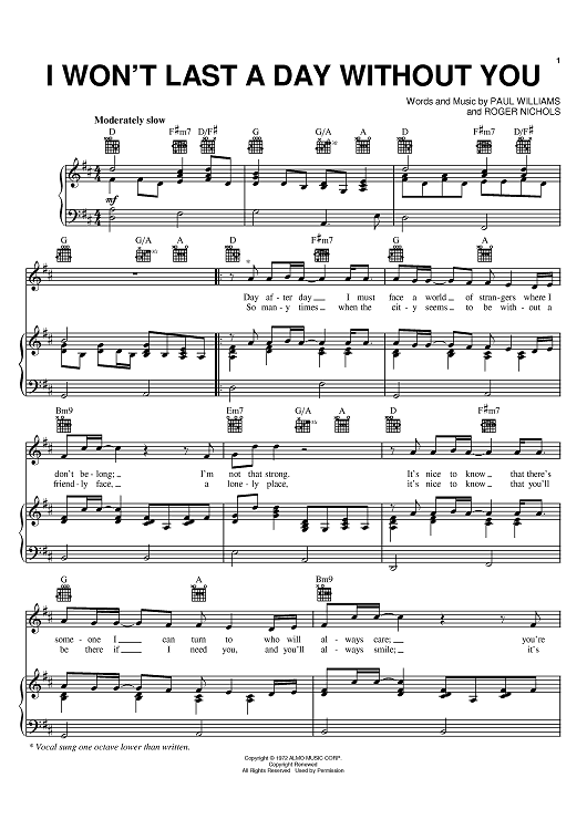 "I Won't Last A Day Without You" Sheet Music by The Carpenters
