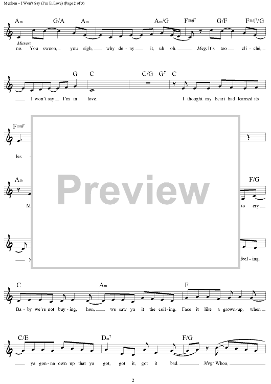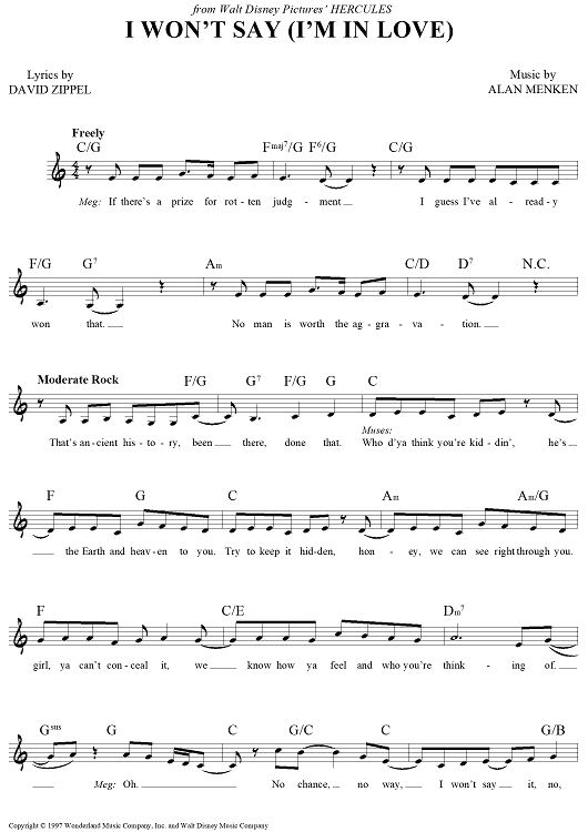 Digital Sheet Music for I Won't Say (I'm In Love) by David Zippel, Alan Menken scored for Lead Sheet; id:441847