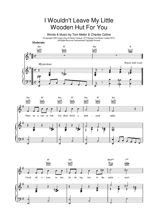 Digital Sheet Music for I Wouldn't Leave My Little Wooden Hut For You by Charles Collins, Tom Mellor scored for Piano/Vocal/Chords; id:379669