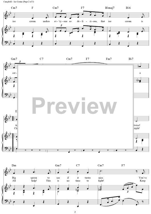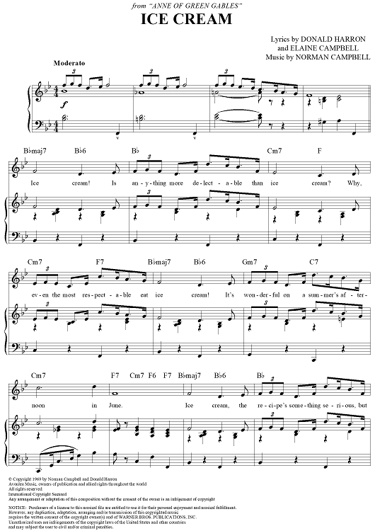 Digital Sheet Music for Ice Cream by Norman Campbell, Donald Harron, Elaine Campbell scored for Piano/Vocal/Chords; id:317875