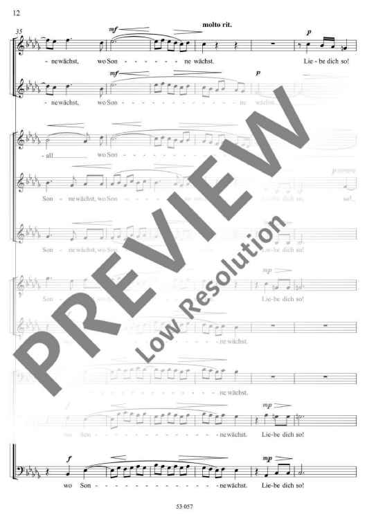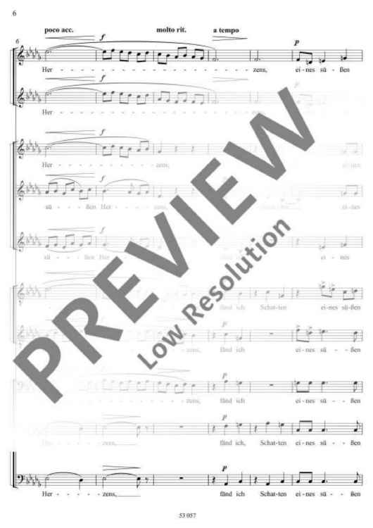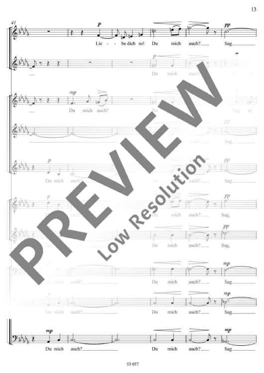 Lately, the 'choir pope' Clytus Gottwald has increasingly arranged late Romantic repertoire pieces for a cappella choir. He said: 'The idea to make music from around the turn of the 19th to the 20th century accessible to choirs in transcriptions emerged from the understanding that choral a cappella music had been underdeveloped at that time.' In order to realise this idea, Gottwald focussed on pieces from Wagner, Mahler via Ravel, Debussy to Messiaen and Holliger. This arrangement is based on an original piano song by Paul Hindemith on a poem by Else Lasker-Schüler, and its soft and expressive sound makes it particularly suitable for a choral setting.