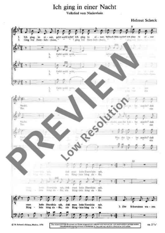 Digital Sheet Music for Ich ging in einer Nacht - Choral Score by Helmut Scheck scored for Mixed Choir (satb); id:479407
